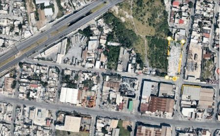 Terreno rectangular ligeramente ascendente, en breña. Completamente bardeado Con uso de suelo industrial y comercial.