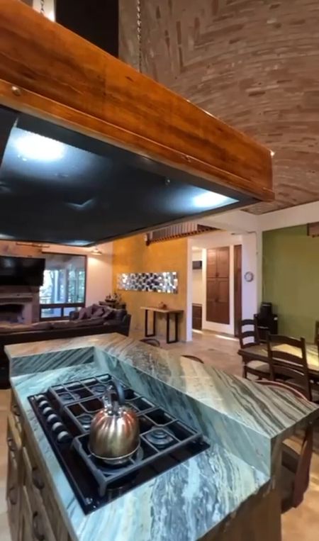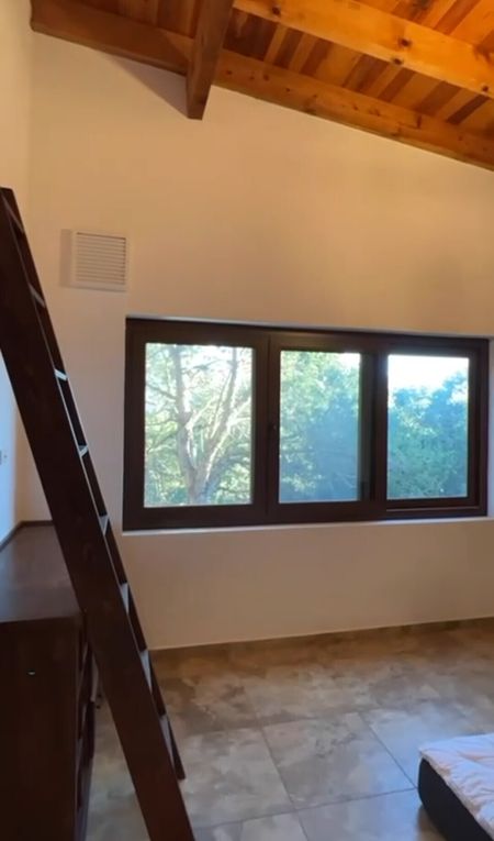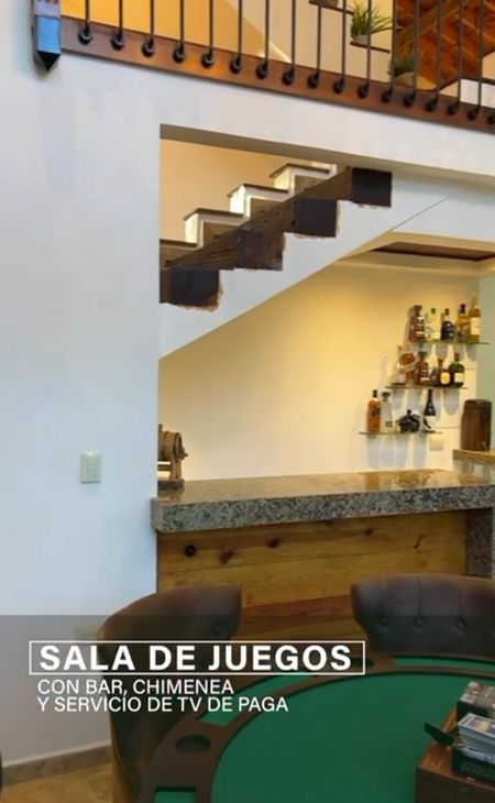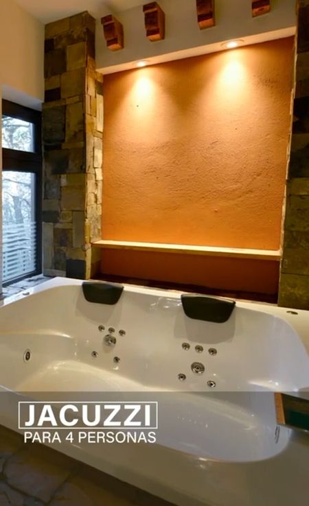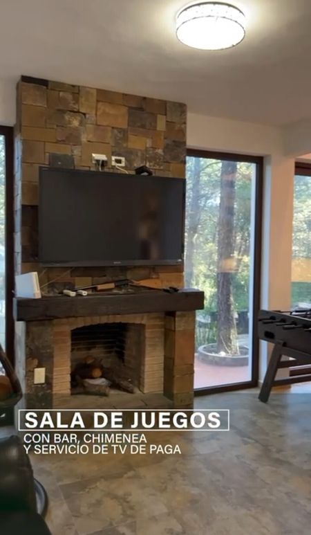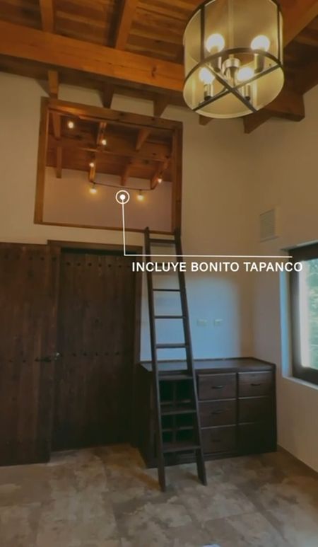 Terraza descubierta en el tercer nivel, dos cisternas y una fosa séptica, paneles solares, 2 chimeneas, barra de asador y un cuarto de juegos, puente colgante de madera, caminos y andadores, malla perimetral, cocina integral, jacuzzi, sistema de riego con pinos y árboles.