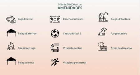 acceso controlado, amenidades con area de juegos, cancha polivalente, vita pista que rodea todo el fraccionamiento, cuenta con todos los servicios, lotes campestres precio $800.00 pesos por metro cuadrado.