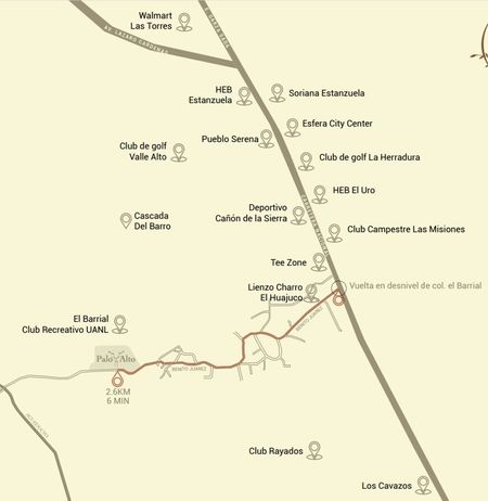 Los terrenos se ubican en el sur de Monterrey, Nuevo León, rumbo al Barrial. Con acceso rápido a la Carretera Nacional.