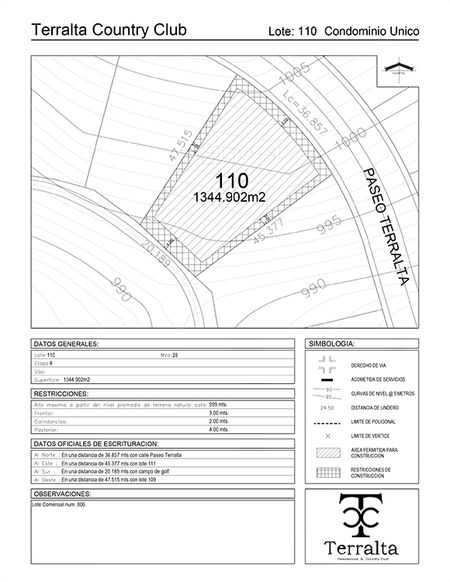 Lote Residencial en Terralta Country Club, la zona más exclusiva y de mayor crecimiento de la ciudad. Terreno ligeramente descendente, colindante con el green del hoyo 4, con extraordinaria vista al poniente. Especial para construir casa con balcones, ventanales y rooftop para disfrutar del aire fresco y las noches estrelladas. Facilidades De pago a 12 mensualidades sin intereses o financiado hasta 6 años con intereses. Está a solo 15 minutos de valle poniente y, al estar a 1,200 MSNM, tiene un clima seco y fresco durante el verano. Sin contaminación. Cuenta con campo de golf profesional, casa club con servicio los 7 días a la semana, restaurantes, albercas, tenis, pádel, gimnasio, ludoteca, spa entre otras amenidades.
