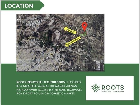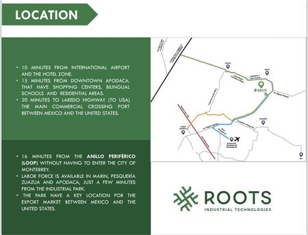 Parque industrial Roots, ubicado en el mpo de Marin, cerca del aeropuerto Mariano Escobedo, 15min de Mty, lotes que van desde 3.7 has, hasta 8.5 has.