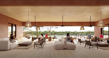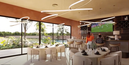 Amenidades casa club: Recepción, restaurante, terraza techada, bar, piscina familiar, piscina de adultos, canal de nado semi olímpico, gimnasio, área de lockers con sauna y regaderas, juegos infantiles, juniors club, área de cowork, canchas de pickleball, canchas de pádel, cancha multifuncional, área de eventos, salón para 200 personas que se puede dividir para eventos de 100 personas, jardín para eventos. (todo esto sólo en la casa club)