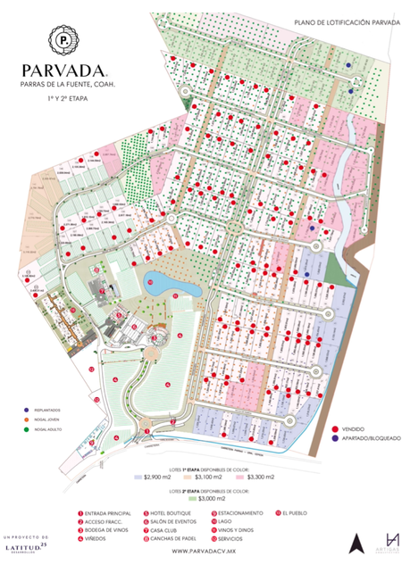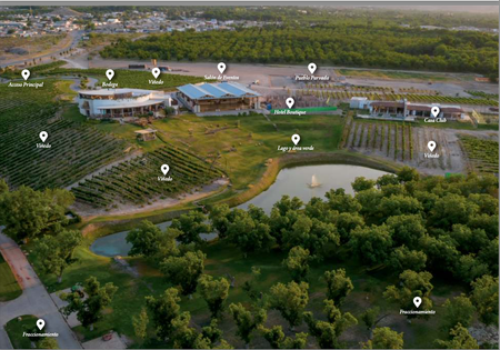 Hotel Boutique, lago y área verde, alberca, cancha de pádel, restaurante, salón de eventos, casa club, bodega de vinos, cuenta con una Vinícola adentro del fraccionamiento.