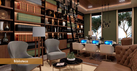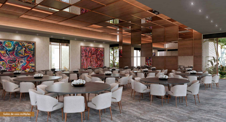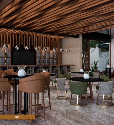 Espacio de trabajo Co-working, Spa con sauna, Alberca y carril de nado, Gimnasio equipado y zona multi training, Salon de Yoga, Canchas de padel, Juice Bar, Ludoteca y juegos infantiles exteriores, Salon de eventos, Terraza, Bar, Area de asadores, Family game room, Biblioteca de objetos.
