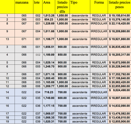 Precio m2 $1,000 dlls