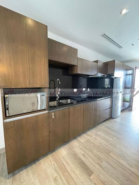 El departamento de 65m2 cuenta con una recamara, baño completo, sala, comedor, cocina equipada, centro de lavado y balcón. Amenidades como alberca, gimnasio, asadores y salón multiusos.