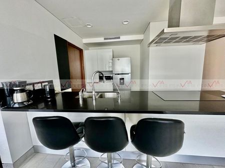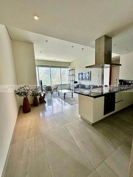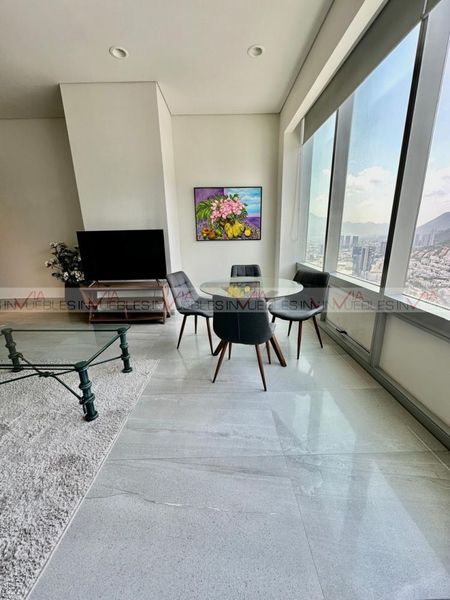 Este moderno departamento totalmente amueblado y equipado te regala vistas panorámicas inigualables desde cualquier rincón, incluyendo una impresionante vista a la Sierra Madre desde la recámara principal.