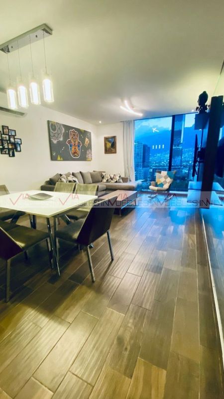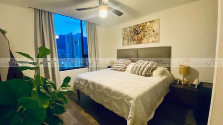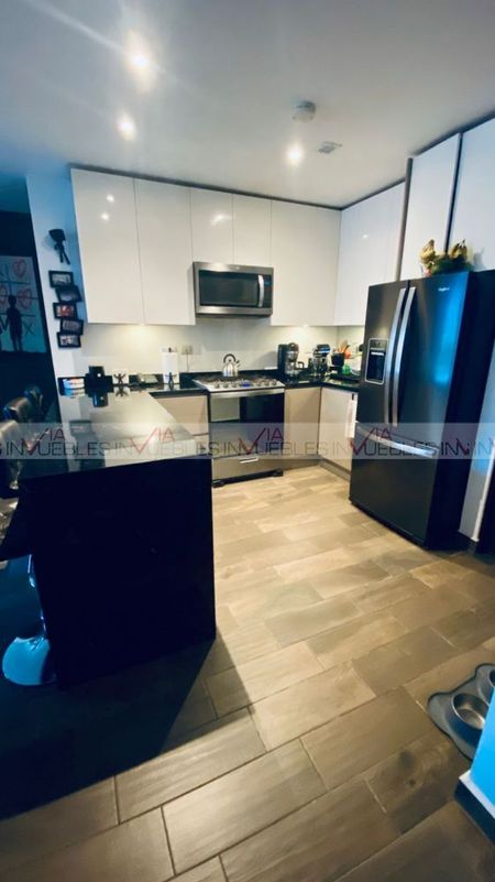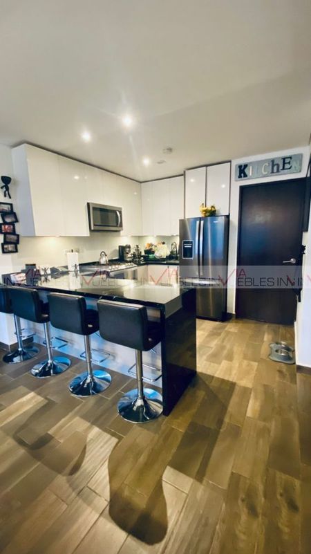 En venta hermoso departamento en Park Santa María, en piso 11. Excelente ubicación, con fácil acceso y rápido avenidas principales. Cuenta con dos recamaras cada uno con su baño completo, walk in closet en uno y closet el otro. Cocina integral con barra de granito, estufa, micro, campana, refri. Su sala y comedor, medio baño, lavandería y bodega; Incluyen minisplit. También cuenta con un balcón con vistas espectaculares a la Sierra Madre.