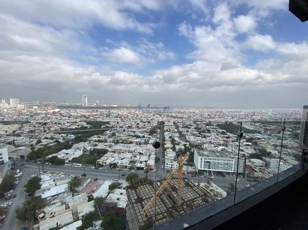 excelentes acabados en pisos y baños, que lo diferencian del resto de los departamentos en la torre, cuenta con un balcón que desde el piso 22, ofrece una vista increíble a la ciudad y el parque fundidora.