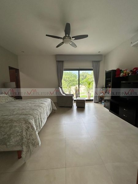 Planta alta: estancia familiar muy amplia, recámara principal con balcón, baño y vestidor, 2 habitaciones secundarias, cada una con su propio baño y vestidor, área de oficina con escritorio y librero empotrados, cuarto de lavado
