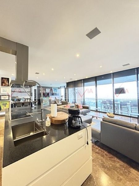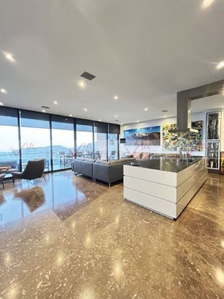 El área social incluye sala, comedor, cocina, bar y terraza donde se pueden apreciar las vistas hacia la ciudad. Acabados de primer nivel: pisos de mármol, cocina Alberó con cubierta de Corian y laminado italiano.