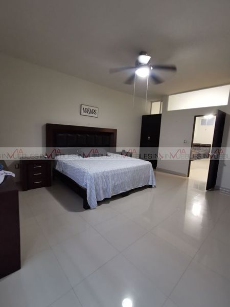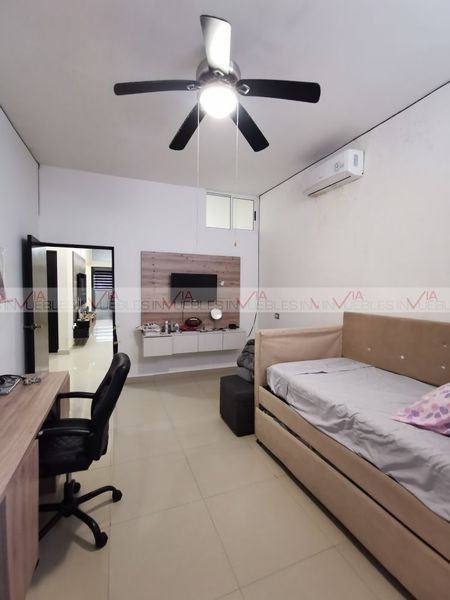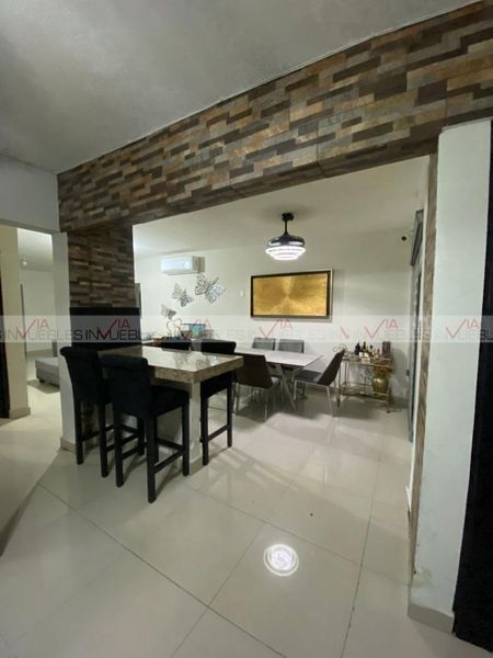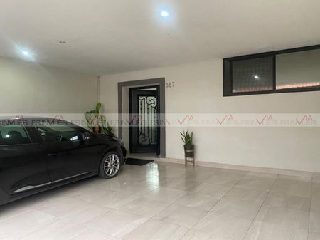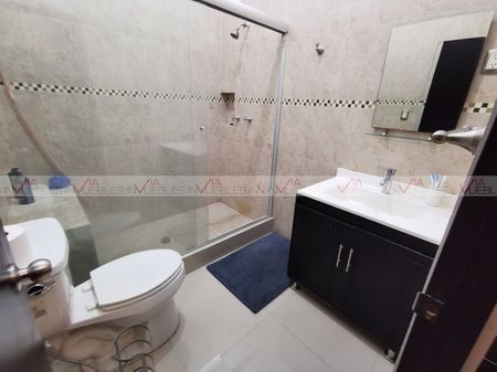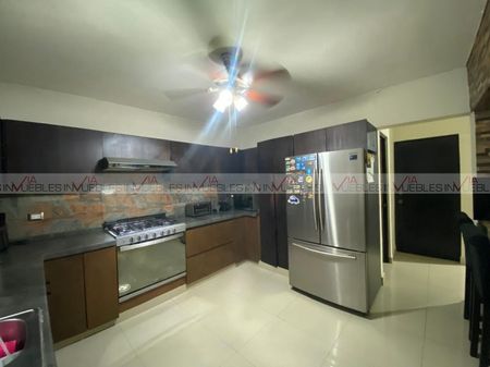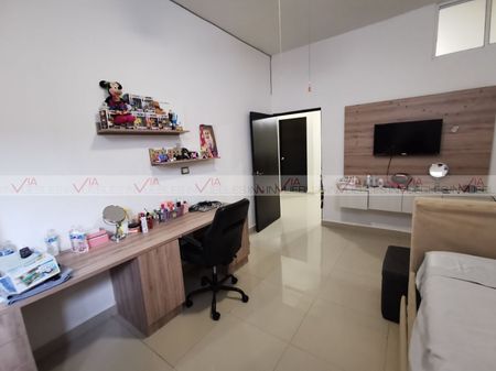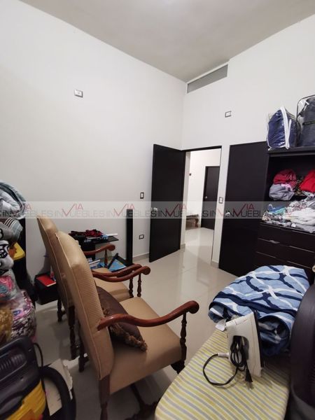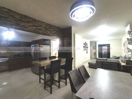 Hermosa casa en uno de los sectores más solicitados en el Sur de Nuevo León, cerca de plazas comerciales, Parques, escuelas, etc. La planta baja cuenta con sala, comedor, cocina equipada con barra de granito, estudio que se puede habilitar como recamara, baño completo, bodega pequeña bajo las escaleras, patio semi-techada con asador y otro baño completo, cochera para dos carros. En la planta alta encontramos una estancia bastante amplia, lavandería dentro de uno de los baños principales y 4 recamaras, la principal y una secundaria con walking closet y baño completo, las otras dos recamaras comparten baño. Id Gvia: 114673