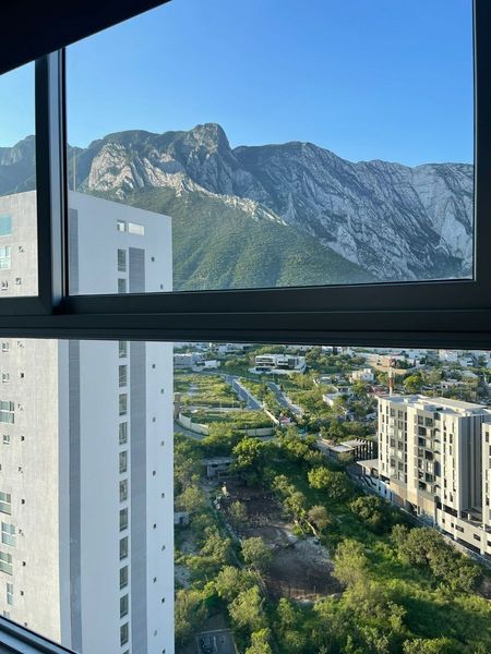Hermoso departamento con vistas a la Huasteca, totalmente equipado, muy cerca de comercios, centros educativos y vialidades importantes. Cuenta con sala- comedor, cocina abierta, baño de visitas, recámara principal con baño y walk-in closet,recámara secundaria con closet de pared y baño completo que comparte con area social.