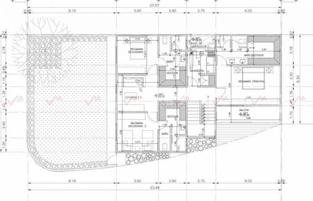 2 plantas, cochera para 2 autos, 3 recámaras cada una con baño y vestidor, recámaras ppal con balcón, estancia en PA, sala, comedor, cocina, recámara con baño completo en PB, cuarto de servicio con baño completo.