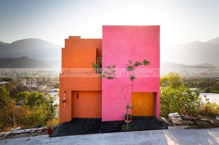 Hermosa casa estudio con un diseño arquitectónico único e innovador, cuenta con 5 recamaras, 5 baños completos, cochera para 2 autos, ubicada en Santiago N,L. con vistas impresionantes. el contraste de la naturaleza con un colorido y balanceado aspecto, nos llena de energía positiva. vive en una obra de arte.