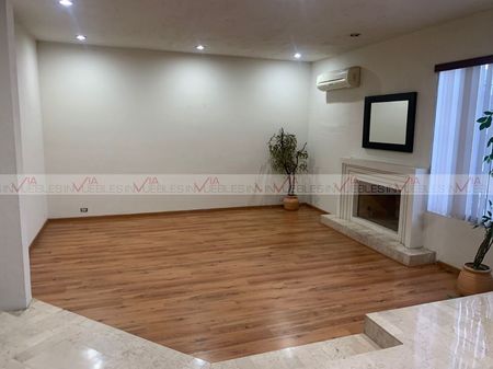 Amplia residencia en exclusiva ubicación en San Pedro en un terreno de 316m2 y 481m2 de construcción. La casa cuenta con un amplio recibidor, sala con chimenea, ante comedor y comedor, amplia cocina integral de acero con alacena, estudio u oficina privada, amplia estancia con hermosa vista a la Sierra Madre, lavandería, cuarto de servicio con baño completo, pasillo de servicio, bodega y 2 boilers. Tiene 3 recámaras cada una con su baño completo y walk in closet, en la recámara principal cuenta con tina de hidromasaje y una terraza interior. Una de las recámaras secundarias también cuenta con un balcón con vista a la Sierra Madre. Tiene 5 baños completos, minisplits y abanicos de techo, cisterna, patio amplio, cochera techada para 2 y espacio para más carros, sistema de alarma, cuenta con doble y triple altura en varias áreas, así como pisos de mármol, duela en recámaras y sala y acabados en madera. Muy bien conservada. Negociable. Id Gvia: 109947