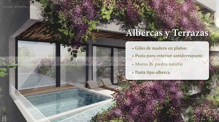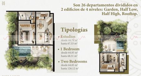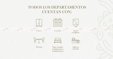 Los departamentos cuentan con: closet, cocineta, baño completo, terraza y alberca privada.