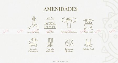 Amenidades: Área de yoga, sky bar, workout station, área grill, cascada distintiva, baños en rooftop, infinity pool .