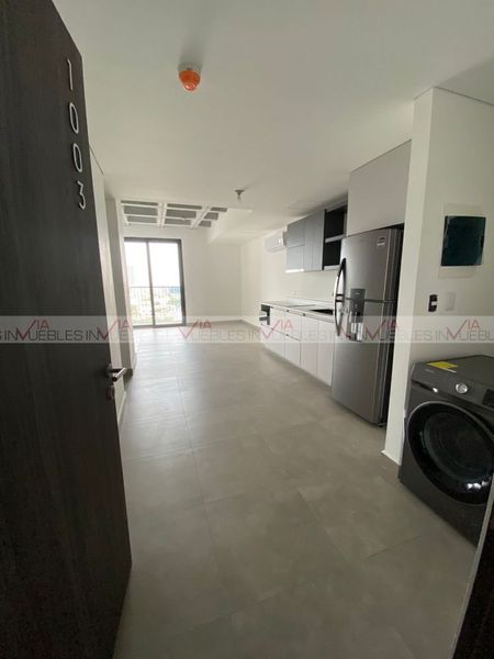 Venta de Departamento listo para estrenar, con hermosas vistas, Ubicado en la Torre Icónica en el piso 10, en la Zona Centro de Monterrey, N.L. Contamos con 61 m2 incluyendo el balcón, distribuidos en sala comedor y cocina integral, con una recamara y 1 baño completo más un flex que puede ser funcional como alcoba o bien como estancia, home office, etc. Espacio para área de lavado. El departamento está equipado con 3 minisplit, (área común, habitación principal y cuarto flex) La cocina integral cuenta con parrilla integral, extractor y refrigerador y microondas, la habitación principal con closet y candelería en el baño y boiler. Incluye un cajón de estacionamiento.