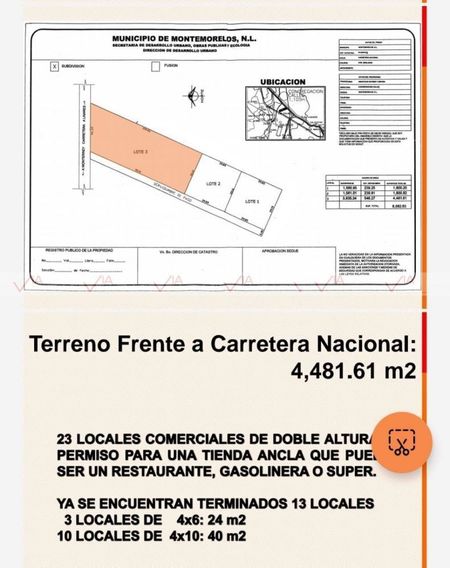 Plaza comercial en venta Montemorelos, Nuevo Leon, sobre carretera Nacional cuenta con 23 locales, 13 locales ya terminados, permisos autorizados, super 7, restaurantes gasolinera. Amplio estacionamiento terreno de 4,481 m2, 1500 m2 de construcción, 43 m de frente, x 109 m de fondo. Excelente ubicación alta plusvalía. Id Gvia: 108718