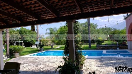 la casa principal cuenta techos tipo bóveda, tubería de cobre en toda la casa ,3 hab. cada una con su baño completo, recamara principal cuenta con cuarto de vapor, cuarto de servicio con baño completo, cuarto de triques muy amplio, taller de manualidades , 2 chimeneas funcionales en recama principal y sala, 2 transformadores de luz en la propiedad, vista ala presa de la boca, sistema de riego, jardín con arboles frutales, cuenta con tractor John Deere para cortar zacate, sistema de seguridad con video con 10 cámaras, cuenta con casa para ranchero equipada, bodega techada, alberca con jacuzzi, arenero, embarcadero frente al arroyo la chueca con rampa para lanchas, 2 palapas con cuarto de baño, asador, cisterna, minisplit, clima central en la panta baja.