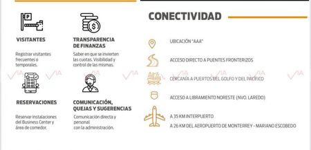 Acceso directo a puentes fronterizos, acceso a libramiento Noreste (Nuevo Laredo), a 26 Km del aeropuerto internacional Monterrey, Caseta de acceso con Vigilancia 24/7, Alta plusvalía,