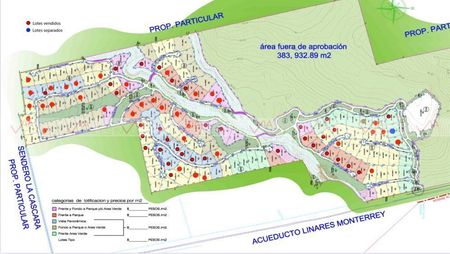 Fraccionamiento Campestre, tranquilo, seguridad, rodeado de naturaleza. El fraccionamiento esta desarrollado sobre una superficie de 84.4 hectáreas, con arboles y rio. Todas las avenidas se encuentras pavimentadas. Los precios varían dependiendo del tamaño del lote, los terrenos van desde 1,980m2 hasta 2,500m2. El costo por metro cuadrado es de $1,350.