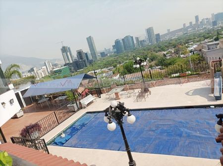 Preciosa casa en venta en la colonia Veredalta, zona exclusiva de la zona Valle, de 625m2 de terreno y 868 M2 de construcción, con excelentes vistas panorámicas hacia el club campestre y de la ciudad, con una ubicación privilegiada y muy segura en el municipio de San Pedro Garza García, Nuevo León. La casa consta de tres niveles y fue construida con materiales de alta calidad por el propietario en terreno descendente, contando con un muro de contención que le da seguridad y soporte. Tiene en total 5 recámaras, 6 baños completos, 1 medio baño, recibidor, sala, comedor, bar, amplia cocina, estancias, oficina, terrazas y cuarto de servicio con baño completo, cochera para tres autos, alberca con área social, celdas solares y bodegas.