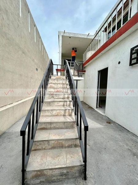 La planta alta que tiene acceso independiente por medio del pasillo de servicio consta de sala, comedor, cocina, 1 recámara, 1 baño, lavandería techada y terraza techada.