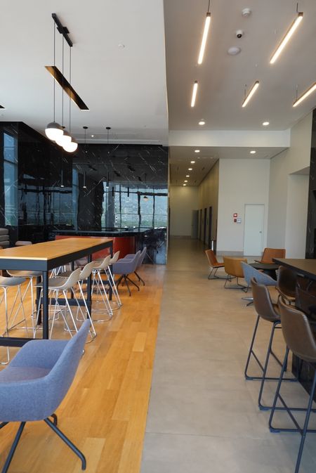 - Business Center con sala de juntas, terraza, espacio de co-work, coffee bar, mesas altas.