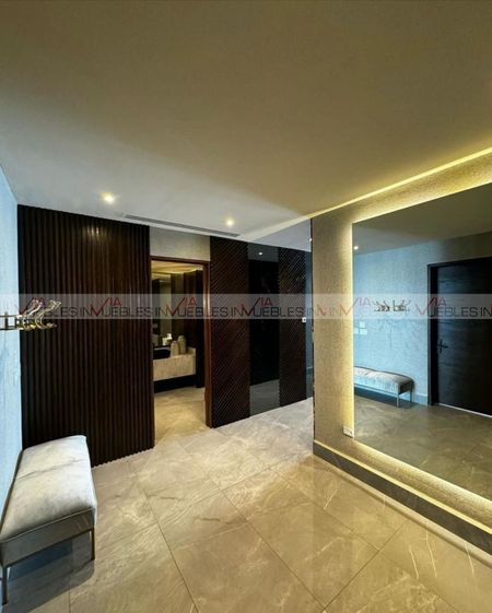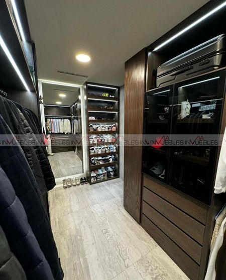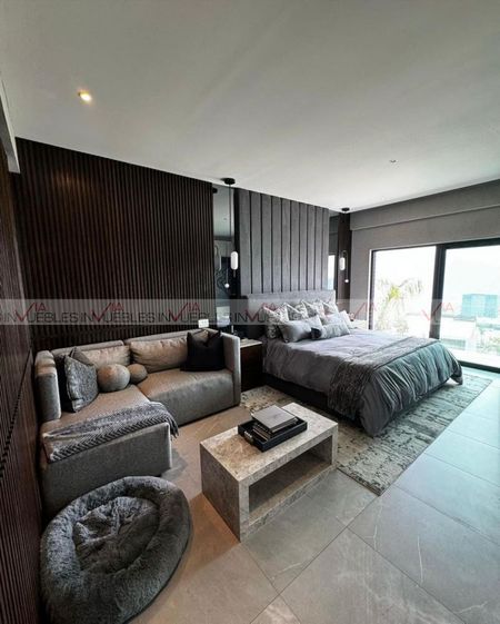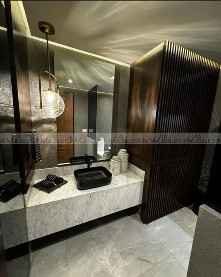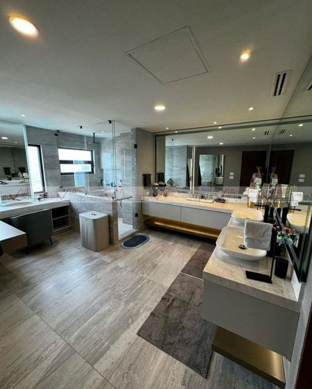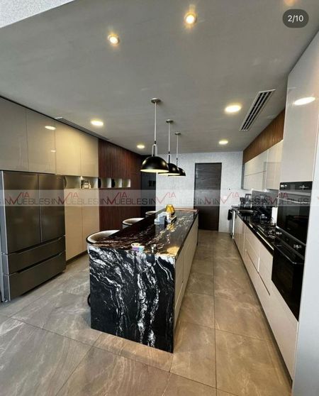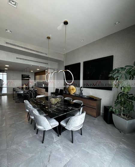 Residencia de lujo en VENTA Zona: Valle Oriente, SPGG T. 310m2 C. 720m2 3 niveles descendentes 1er nivel: Sala, comedor, cocina equipada con cubierta de granito, gabinetes con puertas de cerrado lento electrónico, parrilla, horno, campana y microondas marca Smeg, amplio espacio para almacenar alimentos. Balcón con vista panorámica, recibidor con medio baño de visitas. Cochera para 2 autos, acceso peatonal con conexión a la cocina, alberca y cuarto de servicio. Cuenta con preparación para elevador. 2do. Nivel: recámara principal con balcón, walk in closet, amplio baño con lavabo doble, espejo de piso a techo con iluminación led, persianas eléctricas black out. 2 recámaras secundarias, cada una con área de walk in closet y baño completo, family room, área de lavandería. 3er. Nivel: Alberca, área de asador, baño completo, salón de usos múltiples con capacidad de 100 personas con vista hacia la alberca y la sierra madre, medio baño, área de bodega, área de site. Azotea: Cuarto de servicio con capacidad para 2 o 3 personas, 1 baño completo, 1 minisplit inverter. Generales: Cuenta con 3 bodegas, clima central seccionado en 10 áreas, tinaco con capacidad de 5,000 L. Acabados de lujo: Pisos de porcelanato 1.20m x 60cm, escaleras peatonales interiores con iluminación en los escalones que conectan a toda la casa, boiler. ¡Espectaculares vistas panorámicas hacia la Sierra Madre! Colonia privada con caseta de vigilancia, acceso controlado, Id Gvia: 115881